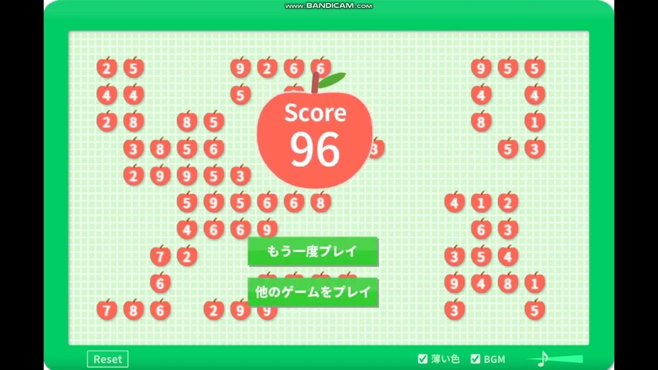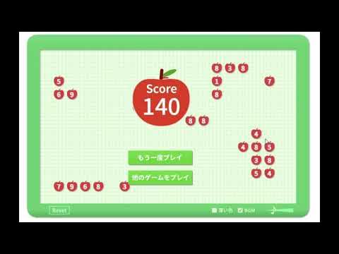 画面上をマウスでドラッグして、数字の合計が10になるようにリンゴを囲むパズルゲームです。(説明) iPhone,iPadやAndroidでも動作します。